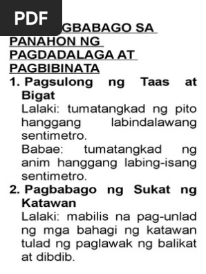 Mga Pagbabago Sa Panahon Ng Pagdadalaga At Pagbibinata