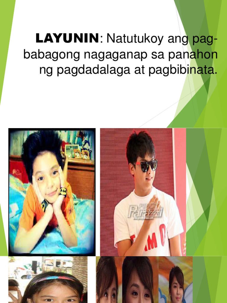 Dahil sa mga pagbabagong nagaganap sa panahon ng pagdadalaga at pagbibinata ang tama at wastong pangangalaga sa ating sarili ang kailangan. Isang kabataang babae ang nagkomento. Pag-umbok ng dibdib at paglapad ng katawan.